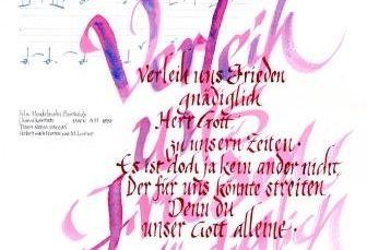 Die Künstlerin Yuriko Ashino hat zu ausgesuchten Psalmen und Musikstücken Kalligraphie-Bilder gestaltet. Die Bilder sind von November bis Januar in der Kirche ausgestellt. Das am Sonntag, den 20. Dezember 2020 um 17.00 Uhr angekündigte Abschlusskonzert "Verleih uns Frieden gnädiglich" mit der Sopranistin Martina Petersen und der anschließenden Finissage wird bis auf Weiteres verschoben.